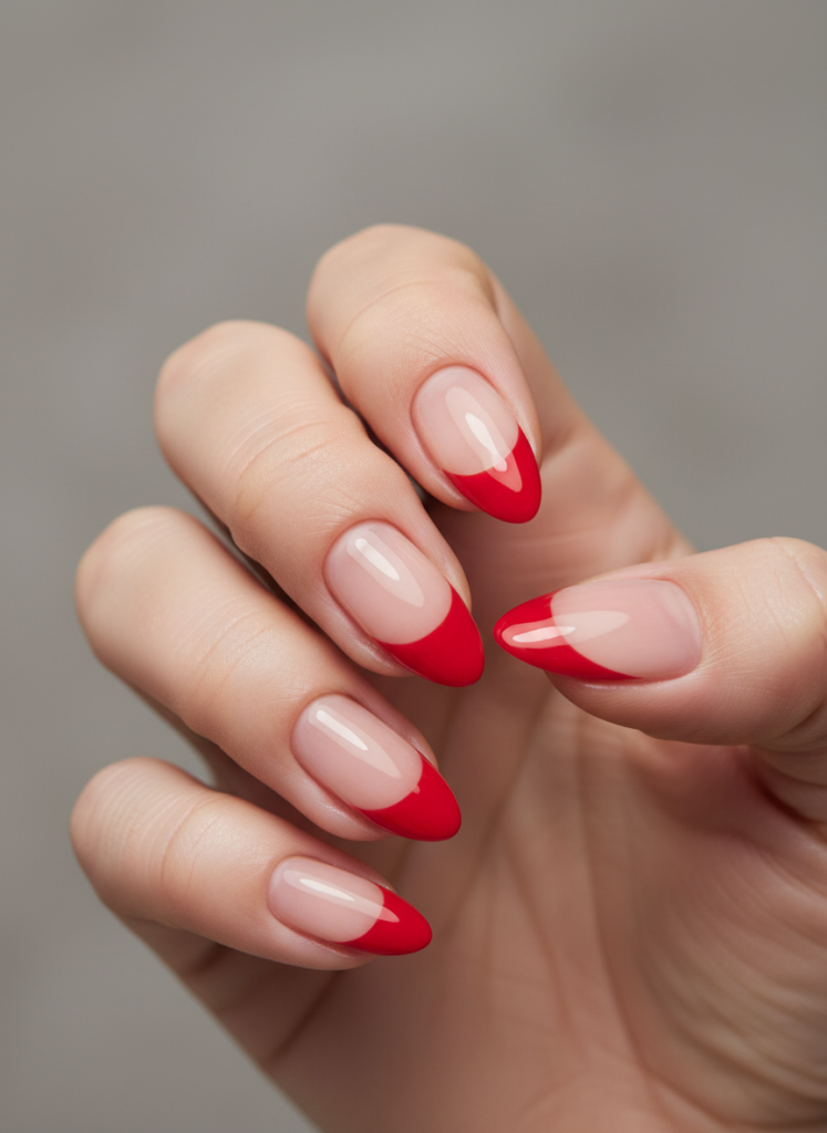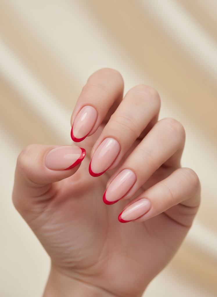 Red French tips look amazing on every shape, but almond and oval shapes tend to be the most universally flattering. Coffin nails make bold red tips look extra dramatic, while round and squoval shapes pair beautifully with minimalist thin-line red tips. Choose based on your personal style and lifestyle.